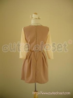 เดรสคุณหนูตกแต่งระบายสีครีมน้ำตาล