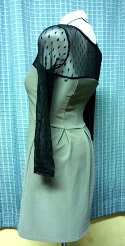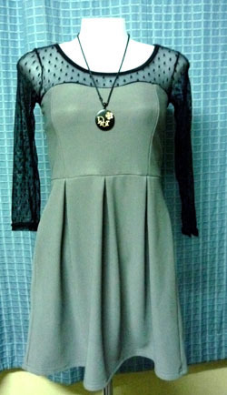 ชุดเดรสสีเทา แขนดำ D-001