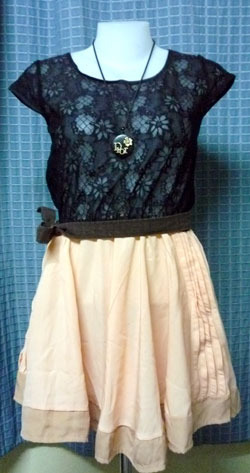 ชุดเดรสดำ กระโปรงสีครีม D-007