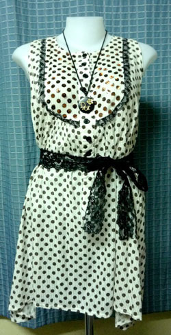ชุดเดรส สีขาว ลายจุดดำ D-020