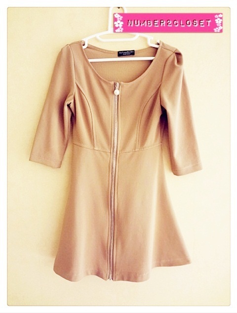 Dress ชุดเดรส ชุดทำงาน สีน้ำตาล มือสอง กระดุมมุก ซิปหน้า
