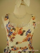 เดรสคุณหนูเสื้อกล้ามตัดต่อกระโปรงสีขาวลายดอกไม้