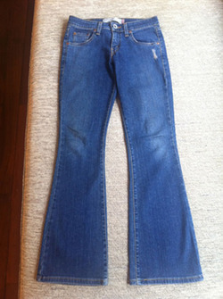 LEVI'S JEANS 518 จาก USA style Super Low Boot Cut หรือ style เอวต่ำ ขาม้านิดๆ กับ style รอยขาดเย็บ ข้างกระเป๋าล่าง (ตามในรูป) สี dark blue wash, เน้ือผ้านุ่ม ใส่สบายมากไม่ร้อน ไม่เหมือนเน้ือผ้า levi's ในเมืองไทย size 0 หรือ เทียบเท่า size S แต่เน่ืองจาก เอวต่ำ วัดเอวโดยรอบ ได้ 28-29 น้ิว ความยาวขาจากขอบเอวบนถึงชายขากางเกง 37.5 น้ิว เสนอขาย 1,500 บาท