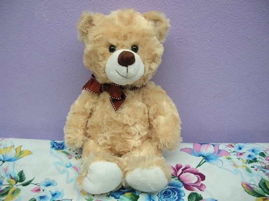 คุณหมีผูกโบว์ที่คอ หน้ายิ้มแบบสุขุมนิ่มลึก ตัวนุ่มนิ่มมากค่ะ ไซต์ 13 นิ้วค่ะ ราคา 250 บาท ส่งฟรีจร้า