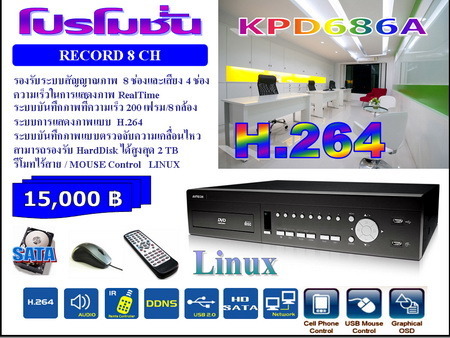 เครื่องบันทึกภาพ AVTECH H.264 แถมฟรี HDD 1000 ชุดโปรโมชั่นพิเศษ DVR AVTECH KPD 686 H.264 NEW CMS / Mouse รายละเอียด: เครื่องบันทึกภาพ DVR AVTECH รุ่น KPD686 8/CH SATA 1 เครื่อง NEW H.264 CMS EagleEye DVR AVTECH KPD686 ใหม่ล่าสุดจาก A VTECH NEW H.264 เป็นอุปกรณ์ที่รองรับระบบ PAL/NTSC (auto detection) การบีบอัดข้อมูลภาพเป็นแบบ H.264 รองรับกล้อง ทั้งหมดสูงสุด 8 กล้อง ซัพพอร์ท Mouse Control สามารถต่อสัญญาณภาพเพื่อแสดงผลในจอแสดงผลหลักเป็นแบบ BNC , VGA และมี Call monitor สำหรับแสดงผล มีขนาดของภาพที่บันทึกสูงสุด ระบบ FRAME 704x480 pixels CIF 352 X 240 pixels มีระบบบันทึกและแสดงภาพ ไม่ต่ำกว่า 400 Fps ต่อ 8 กล้อง สามารถตั้งความเร็วในการบันทึกได้ สามารถเลือกคุณภาพการบันทึก ได้ แบบ Best, High, Normal, และ Basic รองรับฮาร์ดดิสก์ 2 ลูก เป็น ฮาร์ดดิส แบบ SATA มีระบบ ลบข้อมูลจากฮาร์ดดิสก์ น้อยกว่า 2 วินาที มีระบบการบันทึกภาพแบบ ตั้งเวลาบันทึก, ตรวจจับการเคลื่อนไหว, เมื่อมีการเตือน, ตั้งบันทึกตลอดเวลา มีระบบ ลายน้ำ เพื่อป้องกันการดัดแปลงแก้ไขตัดต่อภาพ ระบบ Multiplex ทำงานแยกอิสระต่อกันในการ ดูภาพ บันทึกภาพ เล่นภาพ สามารถตั้งควบคุมพื้นที่ได้ 16x12 ตาราง ต่อกล้อง มีระบบการแสดงภาพแบบลำดับภาพ และสามารถตั้งเวลาในการแสดงภาพได้ มีระบบการ Zoom ภาพเมื่อดูภาพสด 2x มีระบบ Lock ปุ่มกดโดยใส่รหัสผ่านและสามารถตั้งเวลาในการ Lock สามารถคืนค่าในกรณีที่ไฟฟ้าดับและเปิดขึ้นมาเองโดยค่าต่างๆที่กำหนดไม่มีการเปลี่ยนแปลง มีระบบดึงข้อมูลผ่าน USB 2.0 -------------------------------------- เว็ปไซ้คบริษัท : http://m-v-computer.tarad.com บริษัท เอ็ม.วี.คอมพิวเตอร์ จำกัด (สาขางามวงศ์วาน) ศูนย์การค้าพันธุ์ทิพย์พลาซ่า ชั้น 5 ห้อง 5074 ฝั่งทางเข้า-ออกลานจอดรถเลี้ยวซ้ายมือถึงแล้ว(เปิดทุกวันเวลา 10.00 - 20.00น) Tel. 02-9512782 FAX 02-9535074 สายด่วน 0830468241 - 0895068113 (เปิดทุกวันเวลา 8.30 - 21.00น) E-mail: