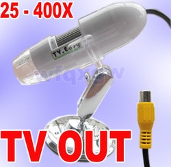 NEW TV out 2.0M Pixel Digital Microscope Zoom 25-400X Product Specifications: Resolution: Same to Monitor display Max Pixel: 2M (1600 x 1200) Microscope lens with 2 stages Zoom Magnification Rate: 25X - 400X Built-in light source: 4 LED 20000 mLux 5 V DC power (Adapter INCLUDED) TV Digi-Microscope is a very good tool for micro-view; it can easily be used in different fields: Skin inspection Hair inspection Industrial inspection: PCB, Material..... Print industrial Biological inspecation Jewel inspection Education purpose Package Contents 1X TV Out Digital Microscope 1X Match 110-240v power adapter(5V DC,USA stand plug) 1X Adjustable Stand 1X User manual 1X Video input cable