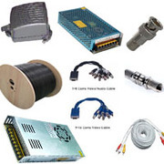 อุปกรณ์กล้องวงจรปิด เช่น ขากล้อง อแดปเตอร์ สายสัญญาณ ชุดควบคุมกล้อง และอื่นๆ