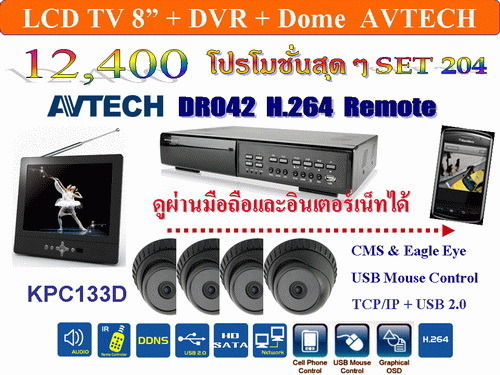 เครื่องบันทึกภาพ DVR AVTECH Support HardDisk 2000 GB + กล้อง DOME AVTECH Infrared 133d ชุดโปรโมชั่นพิเศษ