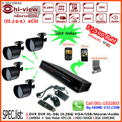 ขายกล้องวงจรปิด Hi-View จัดเป็นชุด 4CH กล้องพร้อมอุปกรณ์ติดตั้งครบราคาประหยัด ดูผ่านจอทีวี จอคอม อินเตอร์เน็ตและมือถือ WindowMobile/IPHONE/Andriod อื่น Tel:086-5000331