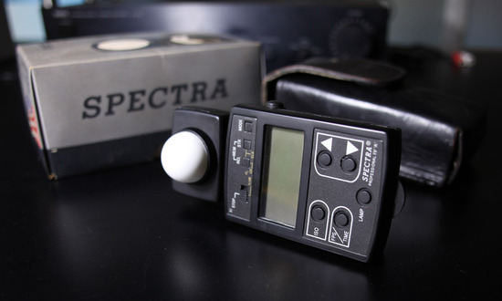 SPECTRA Professional IV-A Digital Exposure Meter เคยใช้ช่วงถ่ายภาพยนตร์โฆษณา 10 กว่าปีก่อน ซื้อมาจากอเมริกา ไม่ได้ใช้นานแล้ว สภาพกิ๊กมากๆ ไม่มีรอยขีดข่วน อุปกรณ์ครบพร้อมกับกล่อง เอามาปล่อยให้คนที่ได้ใช้ประโยชน์ครับ