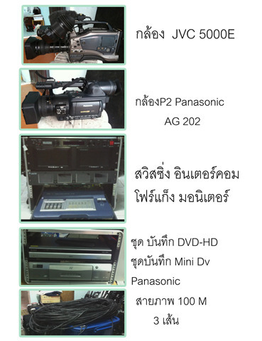 ต้องการขายอุปกรณ์ถ่ายวีดีโอทั้งชุด ประกอบด้วย กล้อง 2 ตัวพร้อมขา ชุดสวิสชิ่ง เครื่องบันทึก สายภาพ (ดูรูป) ติดต่อ อายิ่ง (082-0042507 082-7042250