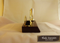 ของขวัญปีใหม่ๆ ของที่ระลึกไทยเก๋ๆ ที่เสียบปากกาและนามบัตร สีทองช้างคู่