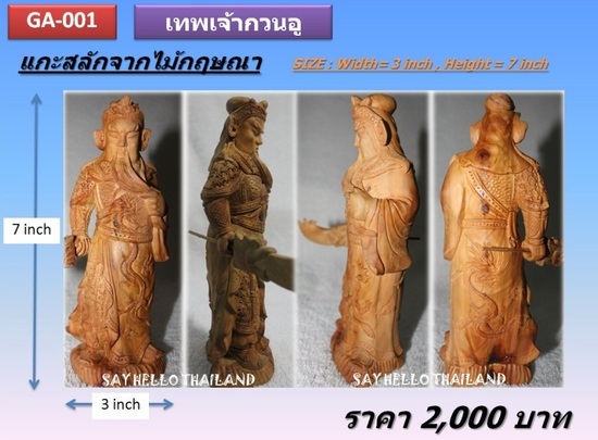 ขายเทพเจ้ากวนอู งานแกะสลักจากไม้กฤษณา (เส้นผ่าศูนย์กลาง 3 นิ้ว สูง 7 นิ้ว) ราคา 2000 บาท จำนวน 1 องค์