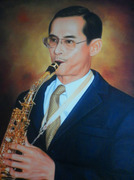 ภาพวาดในหลวง สีน้ำมันบนผ้าใบ พร้อมกรอบหลุย