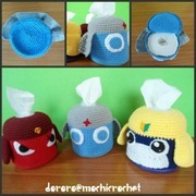 กล่องทิชชูทรงกลมขบวนการเคโรโระ สูงประมาณ 13 เซนติเมตร ใส่ทิชชูแบบความยาว 3 เท่าได้ ราคากล่องละ 150 บาท ยกเซ็ท 5 ตัว ราคารพิเศษ 600 บาทค่ะ Mochicrochet... Lovely days… lovely crochets. จำหน่ายงานฝีมือโครเชต์น่ารัก ตุ๊กตาตัวเล็ก ตัวใหญ่ ของใช้โครเชต์