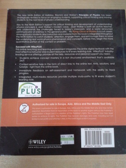 ขาย text book ฟิสิกส์ Principles of Physics 9ED สภาพ 100% ค่ะ เป็นหนังสือที่ซื้อมาแล้วไม่ได้ใช้ค่ะ ห่อปกให้เรียร้อยแล้ว ปกติราคา 910 ลดเหลือ 450 ติดต่อ 084-6181175