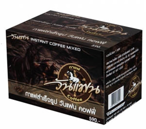 เป็นกาแฟสำหรับท่านชายที่มีส่วนผสมของสารสกัดสมุนไพร ทำให้ออกฤทธิ์เร็วภายใน15-30 นาที ทำให้ผู้ใช้พึงพอใจ รับประทานต่อเนื่องได้และจะปรับสภาพฮอร์โมนและ เพิ่มสมรรถภาพท่านชายให้มากขึ้น ได้รับการรับรองจากคณะกรรมการอาหารและยา( อย. ) อย. เลขที่86-2-01847-20033 http://janey2rainy.blogspot.com/p/blog-page_4549.html