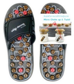 รองเท้านวดกดจุดฝ่าเท้าเพื่อสุขภาพ Massage Slippe ช่วยให้คุณมีสุขภาพดี และผ่อนคลายเหมือนได้นวดสปาฝ่าเท้า รองเท้าสามารถปรับขนาดได้ ใส่ได้ทั้งผู้หญิงและผู้ชาย ผลิตจากวัสดุเกรดA มึความยึดหยุ่นสูง Features of Massage Slipper : 1. Kneading & Acupuncture massage with 10 angle rotation on the multi massage heads. 2. Stainless steel spring will make the massage heads up and down when you work to do kneading & acupuncture massage for your feet. 3. Designed according to the foot reflexology. 4. Massaging the important acupuncture points, thus do good to human health. Functions : 1. Promote blood circulation and relieve fatigue 2. Balance incretion and keep healthy 3. Strengthen metabolism and stay young Apply to the following : 1. People who have to stand for a long time 2. People who have to walk frequently 3. People who under heavy pressure 4. People who bear rheumatism , arthritis , backache, neuralgia, hypertension 5. People who are easy get exhausted 6. People with sub_health ราคา 1,290 บาท พิเศษ! ซื้อ 1 แถม 1