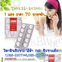 B2B6 WHITE PILLS x 1 กล่อง วิตามินผิวขาว ยับยั้ง ฝ้า กระ จุดด่างดำ BB White แท้นำเข้าเกาหลี BB white วินผิวขาวที่เห็นผลที่สุดในตอนนี้ ((((มีของพร้อมส่งเลยจร้า)))) ผลิตภัณฑ์ B2B6 WHITE PILLS BB White ช่วยลดกระ รอยฝ้า และปรับผิวขาว เพื่อผิวขาวกระจ่างใส เหมือนไข่ปลอกเปลือก วิ้งๆๆๆ BB white วิตามินผิวขาว ลดฝ้า กระ จุดด่างดำ แผงละ 70 บาท เท่านั้น!!! เห็นผลภายใน 1 กล่อง ส่งออกไปขายแถบยุโรปเยอะมาก B2B6 WHITE PILLS BB White ช่วยลดกระ รอยฝ้า 1กล่องบรรจุ 120 เม็ด ทานได้ 1เดือน ทานวันละ 4 เม็ด 2 เวลา ครั้งละ 2เม็ด เห็นความแตกต่างในเวลาอันรวดเร็ว ลงนิตยสารต่างประเทศทุกเดือน