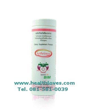 อาธริน็อกซ์ แคปซูล อาหารเสริมบำรุงสุขภาพปรับสมดุลสำหรับผู้มีปัญหา ข้อเข่าเสื่อม,ขวดเข่า,รูมาตอย เลขที่ อย.51-1-00739-1-0092 ผลิตภัณฑ์เสริมอาหารบำรุงสุขภาพ เกิดจากการพัฒนาต่อยอดผลงานวิจัยของนักวิทยาศาสตร์ Operation BIM นำโดย ศาสตราจารยฺ์ ดร.พิเชษฐ์ วิริยะจิตรา ประกอบด้วยสารที่มีคุณภาพสูงสุดจากมังคุด เสริมประสิทธิภาพด้วยสารธรรมชาติ คุณภาพสุดยอดจากผลไม้และธัญพืชที่มีคุณค่าโภชนาการสูง จนได้ส่วนผสมที่มีประสิทธิภาพสูงสุด ปลอดภัย ไร้ผลข้างเคียง อาธริน็อกซ์ Arthrinox (หัวข้อเข่าเสื่อม,ปวดเข่า,รูมาตอยด์) ประกอบด้วยส่วนผสมของสารที่มีคุณสมบัติเด่นๆในมังคุด GM-1 ตามที่มีรายงานในวงการวิทยาศาสตร์มาแล้วในปริมาณที่เหมาะสม พร้อมทั้งมีส่วนผสมของสารจากธรรมชาติที่ปลอดภัยอื่น อาทิเช่น ใบบัวบก สารสกัดจากงาดำ โปรตีนสกัดจากถั่วเหลือง ฝรั่ง เพื่อช่วยเสริมสร้างประสิทธิภาพของสารสรรพคุณมังคุดให้มีประสิทธิภาพสูงขึ้นอีก โดยปราศจากผลข้างเคียงและได้มาตรฐานที่สามารถส่งออกไปจำหน่ายได้ในตลาดโลก วิธีรับประทาน : รับประทานครั้งละ 2-4 แคปซูล ก่อนอาหาร 1 ชม. หรือก่อนนอน 1 ชม. สามารถศึกษารายละเอียดเพิ่มเติมได้ที่ www.healthloves.com ศูนย์BIM100 ตั้งอยู่เลขที่22/109 ซ.ประชาอุทิศ33(แยก10) แขวงบางมด เขตทุ่งครุ กรุงเทพ 10140 บริหารงานโดย สุชารัตน์ โทร. 081-581-0039