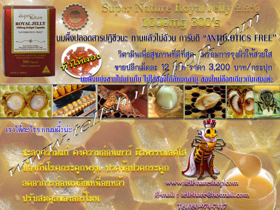 Royal Jelly 1,000mg นมผึ้งปลอดสารปฏิชีวนะ ท้าให้ลอง ขายปลีกเม็ดละ 12 บาท วิตามินเพื่อสุขภาพที่ดีที่สุด พร้อมการบำรุงผิวให้สวยใสมีออร่า