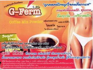วิธีชง ใช้กาแฟ 1 ซอง ชงในน้ำร้อน 1 ถ้วย (120 ซีซี ) G-ferm เป็นกาแฟสำเร็จรูป สูตรไม่มีน้ำตาล รสเข้ม หอม อร่อย ไม่ใส่สารปรุงแต่งกลิ่นหรือสีสังเคราะห์ใดๆ ได้รสชาติของกาแฟแท้ๆ เพิ่มคุณประโยชน์โดยมีส่วนผสมของคลอลาเจน 1000 มก. ใยอาหาร 1000 มก. แอลคาร์นิทีน 300 มก. โสมสกัด 180 มก. วิตามิน และ เกลือแร่ ต่างๆนอกจากจะทำให้รู้สึกสดชื่น กระปรี้กระเปร่า ไม่ง่วงนอนแล้ว ยังจะช่วยเพิ่มอัตราการเผาผลาญแป้งและไขมัน (ช่วยลดการสะสมของไขมันใหม่ และสลายไขมันเก่า) ช่วยยับยั้งความอยากอาหาร ช่วยเสริมสร้างกล้ามเนื้อให้แข็งแรง กระชับ แน่น ไม่นิ่มเหลว ไม่หย่อนยาน ช่วยให้ผิวพรรณนุ่มนวล มีความกระชับ และมีความยืดหยุ่นดี ไม่เหี่ยวย่น เมื่อรับประทานเป็นประจำจึงทำให้หุ่นดี เพรียวบาง สวยถาวร