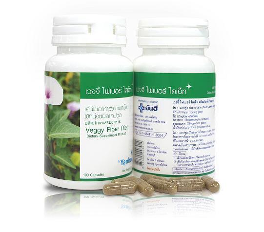 ผลิตภัณฑ์ในเครือ รพ.ยันฮี เวจจี้ เป็นเส้นใยอาหารจากผักบุ้ง สำหรับดีท๊อกซ์ล้างสารพิษที่ลำไส้ใหญ๋ ดูดซับไขมัน ลดน้ำหนัก