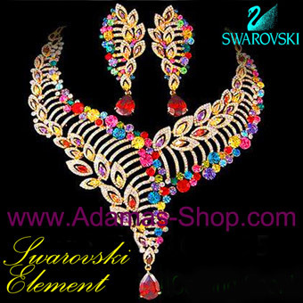 ขายชุดเครื่องประดับ-เซตจิวเวลลี่คอสตูมจิวเวลลี่ คริสตัลชวารอฟสกี้หลากสีชุดเกล็ดนางฟ้า 3 ชิ้น ส่งEMSฟรีทั่วไทย