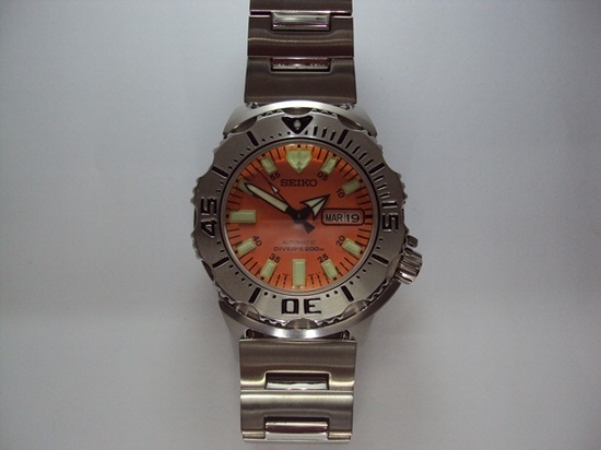 - ตัวเรือน และสายสเตนเลส สตีล - หน้าปัดสีส้ม - หน้าปัดขนาด 40 mm. - ระบบบอกวันที่ และ วัน - ระบบบอกเวลาแบบ AUTOMATIC - กันน้ำ 200 m.