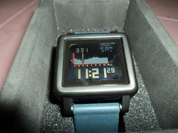 Programmed tide info for 200 beaches till 2020 dual time alarm countdown timer Wave counter Chrono and light Water resistant 100 Meters Case: Custom 100 meter stainless steel w/ molded ABS pushers and hardened mineral crystal 36.50 x 40.50 mm Band: Custom injected silicone woth patented locking looper and stainless steel buckle 21.50 mm wide