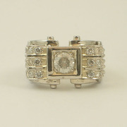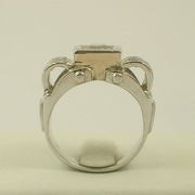 แหวนเพชร ตัวเรือนทำด้วยทองขาวโบราณ ฝังเพชรเกสรเม็ดกลาง 0.67 cts. ด้านข้าง 0.25x18 cts. น้ำหนักรวมทั้งวง 10.9 กรัม หน้ากว้าง 1.4x2.1 cm. Size 54