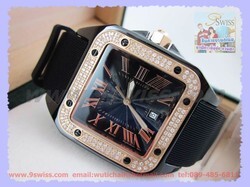 CARTIER Santos 100 Diamond "Black" (38 mm)Ceramic:Silicon ตัวเรือนทำจากเซรามิคแท้ สายยางซิลิโคน นุ่มสบายมือ งานสวยมากๆ กับงานมิเรอร์บอดี้สวิส