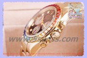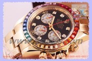 ROLEX Daytona Rainbow Baselworld 2012,Black(40 mm)Yellow Gold รุ่นล่าสุด 2012 ขอบหน้าปัดประดับพลอยหลากสี สวยสะดุดตา พร้อมระบบจับเวลาแท้ Quartz Chronograph เข็มกระโดดกลับเหมือนแท้
