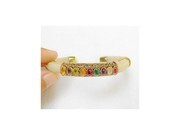 กำไลหางช้างขาวล้วนประดับด้วยพลอยแท้หลากสี 9 ชนิด ตัวข้อรัดขนาดใหญ่ทำจากเงินแท้ 92.5 เป็นงานถมทองแกะลายไทย