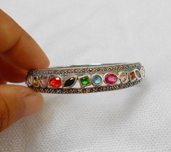 กำไลเงินแท้ 92.5 ประดับพลอย+แมกกาไซด์รอบวง