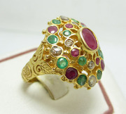 แหวนฉลุลาย ทับทิมพม่า มรกต เพชรซีก นน. . 10.90 g