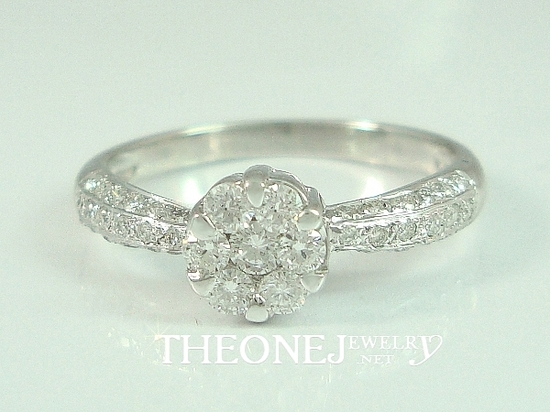 แหวนเพชรเบลเยี่ยมคัท ดีไซน์ดอกไม้ น้ำหนักเพชรรวม 0.42 กะรัต Color 97