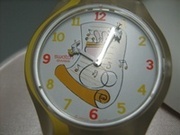 Swatchรุ่นลิมิเต็ดครบรอบ80พรรษา สายยางสีเหลือง ใช้แบตเตอรี่เปลี่ยนถ่าน กล่องเป็นรูปกระต่าย ตัวนาฬิกาน่ารักมาก ค่ะ ซื้อมาสองเรือนกะว่าจะใส่คู่กันกับแฟนค่ะแต่แฟนบอกว่าเล็กเลยจะขายต่อ สนใจติดต่อทางwhatsapp-0897970203-ได้ค่ะ