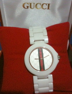 นาฬิกา GUCCI สีขาวและสีดำ Body Swiss / Automatic /Ceramic 100% ตัวเรือนขนาด 35 mm. สำหรับ Lady size
