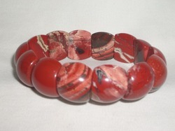 สร้อยข้อมือ ทำจากหินJasper เจียรไนเป็นชิ้นบาง ทรงสี่เหลี่ยมหลังเต่า เรียงร้อยด้วยเส้นเอ็นยืด