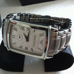 นาฬิกาสำหรับสุภาพบุรุษ แบรนด์ Emporio Armani รุ่น AR-0243 มือสอง สวยคลาสสิคสุดๆ ตัวเรือนและสายทำจาก Stainless Steel มีรอยขนแมวเล็กน้อย แต่สภาพโดยรวมสวยและคลาสสิคมากๆ เหมาะสำหรับใส่ทำงาน ถ้าถูกใจ ราคาต่อรองกันได้อีกนิดหน่อยครับ มาพร้อมกล่องและใบรับประกันอย่างดี