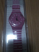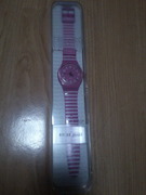 นาฬิกาข้อมือ Swatch สายพลาสติกสีชมพูคาดขาวผู้หญิง มือหนึ่ง รับประกัน 2 ปี ของแท้ ราคาขายใน Shop1,650 บาท ขายเพียง 1,000 บาท