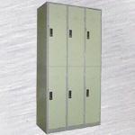 ตู้ล็อคเกอร์ 9 ประตูขนาด 91*54*183 ซม. มีสีครีม และสีเทาสลับ