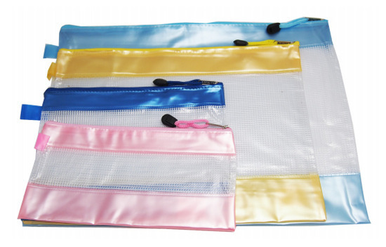 ขาย ซองซิปแบบตาข่ายคาด PVC สีหวาน ราคาส่งพิเศษ