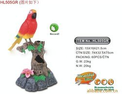 3. นกพูดได้ตามเสียงคน(เป็นที่เสียบปากกาด้วย) ขยับ ปาก หัว หาง ตอนพูด เสียงเหมือนนกจริงๆ มันสามารถบันทึกเสียงคนได้อัตโนมัตินาน 3 วินาที ขณะที่มันบันทึกเสียงจะมีไฟติดสีแดง
