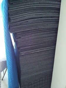 พรมสำนักงาน มือสองสภาพใหม่ 90% สีฟ้าอมน้ำเงิน ทั้งหมด 90 ตรม (พรมลูกฟูก) มีชุดเดียวค่ะ ราคา 30 บาท ต่อ ตรม