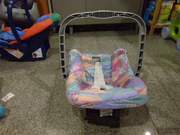 คาร์ซีท Car Seat แบบกระเช้าหิ้ว พร้อมฐาน ยี่ห้อ CENTURY USA ฐานสีเทา เบาะชมพู-เขียว-ส้ม