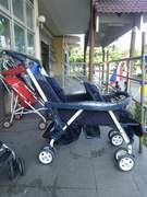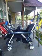 รถเข็นเด็กแฝด ยี่ห้อ Combi รุ่น Twin Spin สีน้ำเงิน ลายแซงมีจุด