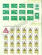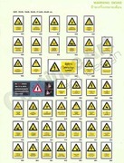 ระวังอันตรายสารกัดกร่อน, ระวังอันตราย, ระวังไฟฟ้าแรงสูง, ระวังพื้นลื่น, ระวังสารเคมีอันตราย, ระวังสารไวไฟ, ระวังมีการยกวัสดุด้านบน, ระวังอันตรายจากกรดเกลือ, ระวังอันตรายจากกรดซัลฟูริค, ระวังอันตรายจากละอองฝุ่น, ระวังอันตรายจากสารแอมโมเนีย, ระวังอันตรายจากกรดไนตริก, ระวังก๊าซไวไฟ, ระวังอันตรายจากโซดาไฟ, ระวังอันตรายจากไฟฟ้าช็อต, ระวังอันตรายจากรถบรรทุก, ระวังตกจากที่สูง, ระวังไฟฟ้าช็อต