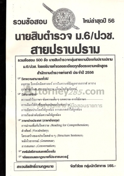 รวมข้อสอบ นายสิบตำรวจ สายปราบปราม วุฒิ ม.6 ปวช. รวมข้อสอบ 500 ข้อ พร้อมเฉลย ปี 56